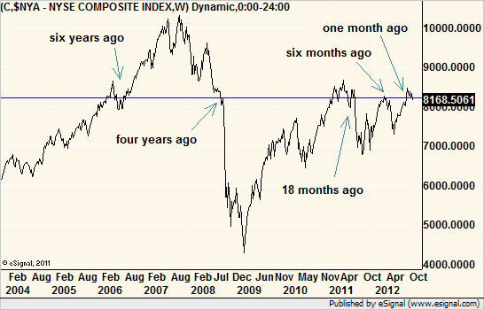 We’ve all read about the lost decade for stocks and now here we are a few years later than that and the S&P 500 is still no better than it was in 2000. It managed to climb back in 2007 before falling to and even lower low than it saw in 2002. And today in 2012, even without today rout, the index is below both of those previous peaks.